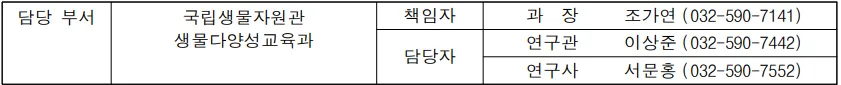 오는 6월부터 교육과정을 시작해 5개월간 10차시 이상의 생물다양성 기초 이론과 주제 탐구교육을 거쳐 최종적으로 공연 또는 발표로 마무리하게 된다. 국립생물자원관은 효과적이고 안전한 교육 환경을 조성하기 위해 학교 현장에서 사전점검을 실시하고, 수업에 필요한 교보재와 안전사고 예방을 위한 지원 인력도 함께 제공할 예정이다.