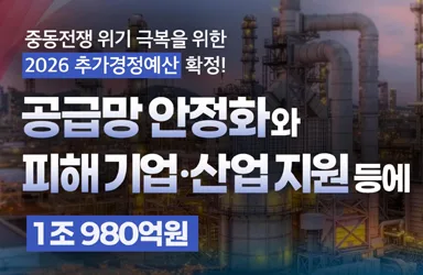 중동전쟁 위기 극복을 위해 정부가 2026년 추가경정예산 1조 980억 원을 확정했다. 이 예산은 공급망 안정화와 피해 기업·산업 지원에 집중돼 일반 소비자와 중소기업에도 영향을 미친다.