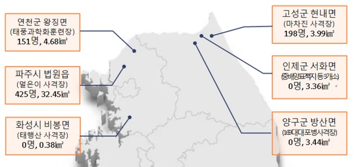 먼저 파주시 멀은이 사격장, 고성군 마차진 사격장, 연천군 태풍과학화 훈련장 등 8곳이 소음대책지역으로 새롭게 지정된다. 이들 신규 지정 지역에서는 약 770명의 주민이 보상 대상에 포함된다.